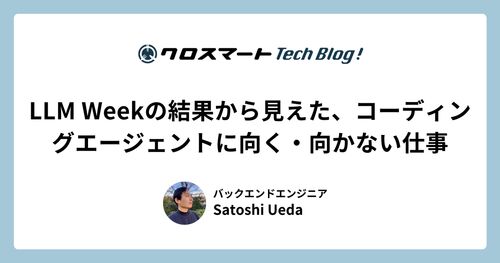はじめに Q. LLM Week中の開発効率は普段よりも高かったですか? Q. 「自分で書いた方が早い」と思ったコードの変更行数の割合はどのくらいですか? Q. LLM Weekで一番使ったコーディングエージェントを教えてください Q. コーディングエージェントでの開発に…