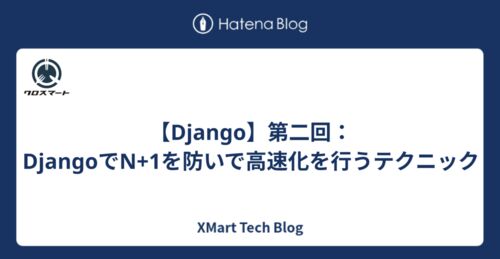 バックエンド担当の山田です。 前回の予告通り引き続き処理負荷軽減テクニックを紹介します。 xmart-techblog.hatenablog.com 前回はN+1の箇所の見つけ方を紹介したので、今回は具体的に問題箇所に対応する方法… select_related, prefetch_relatedについてで…