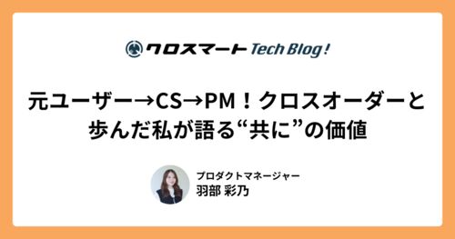 はじめましてこんにちは! クロスマート株式会社でプロダクトマネージャー(以下、PM)を務めております羽部です。 クロスマートに入社して2年3ヶ月。CS(カスタマーサクセス)からスタートし、1年2ヶ月の産育休を経てPMとして復帰しました。まだ7ヶ月の新米…
