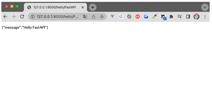 ブラウザで http://127.0.0.1:8000/hello/FastAPI にアクセスしてみましょう。