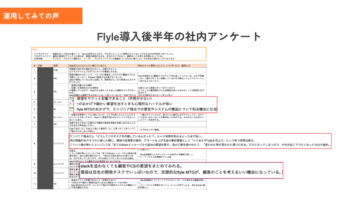 ただ杉原個人がロイヤルユーザーで、好きなプロダクトというのみです。この手のツールをめちゃくちゃ比較検討したというわけでもないので、その点ご容赦ください。 - また本記事の内容は6月に行われた「Flyle」のユーザー会で話した内容を利活用しています。一層PR感がすごく感じるかもしれませんが、あくまで伝えたいことは「顧客の声や現場の声をどう開発に活かしているか」なのでその点もご承知おきください。